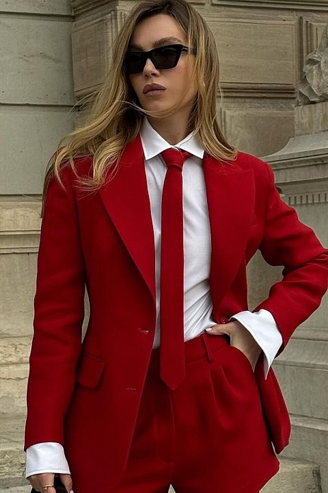 Discover the perfect 3-piece women's suit for a sophisticated and elegant look. Composed of a classic-cut red jacket, tailored shorts and a matching tie, this outfit is ideal for formal events and glamorous outfits. Made with high-quality materials, it offers comfort and style. Perfect for those looking for a bold and refined look, capable of combining elegance and modernity.